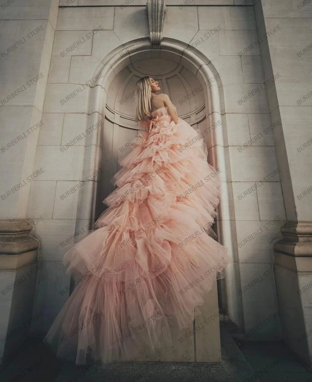 Длинные платья для выпускного Pretty, розовые Многослойные тюлевые ...