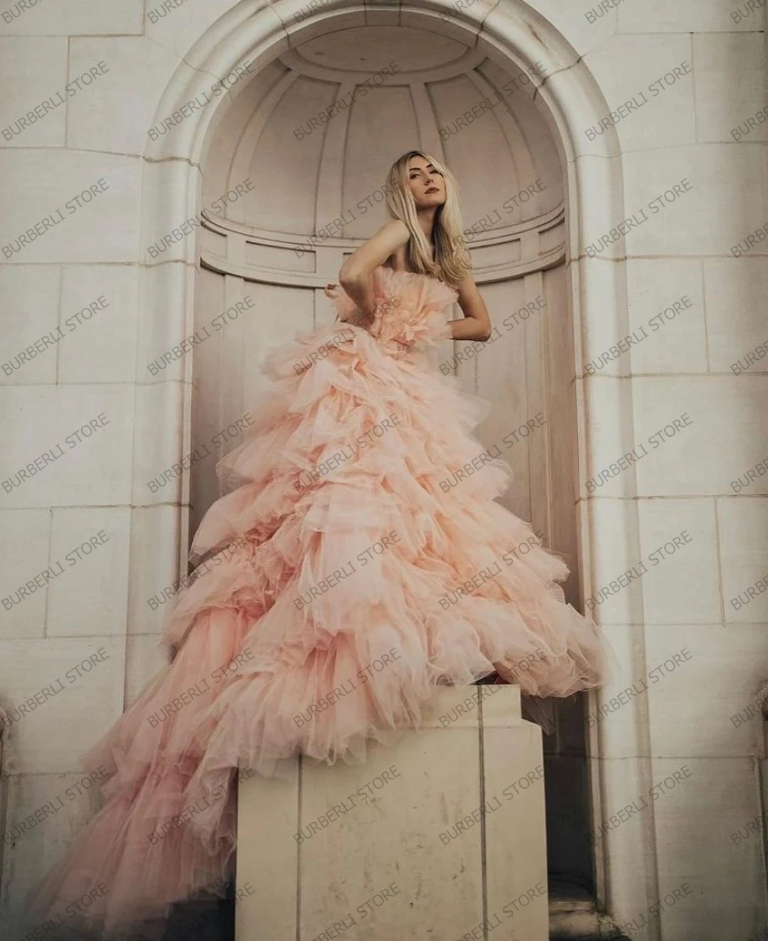 Многослойное платье из тюля с глубоким V-образным вырезом для фотос...