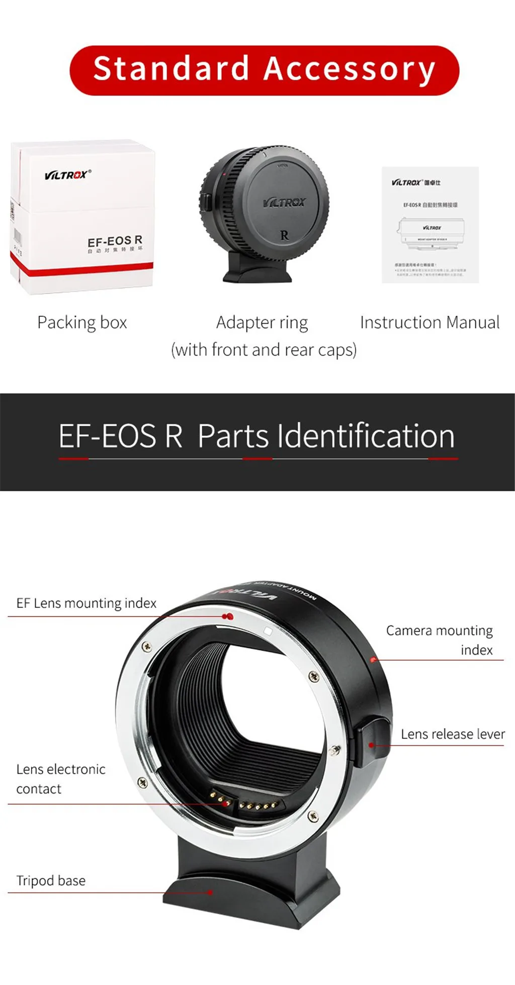 Адаптер для объектива VILTROX EF-EOS R-1 шт.1 передняя крышка1 задняя крышка
