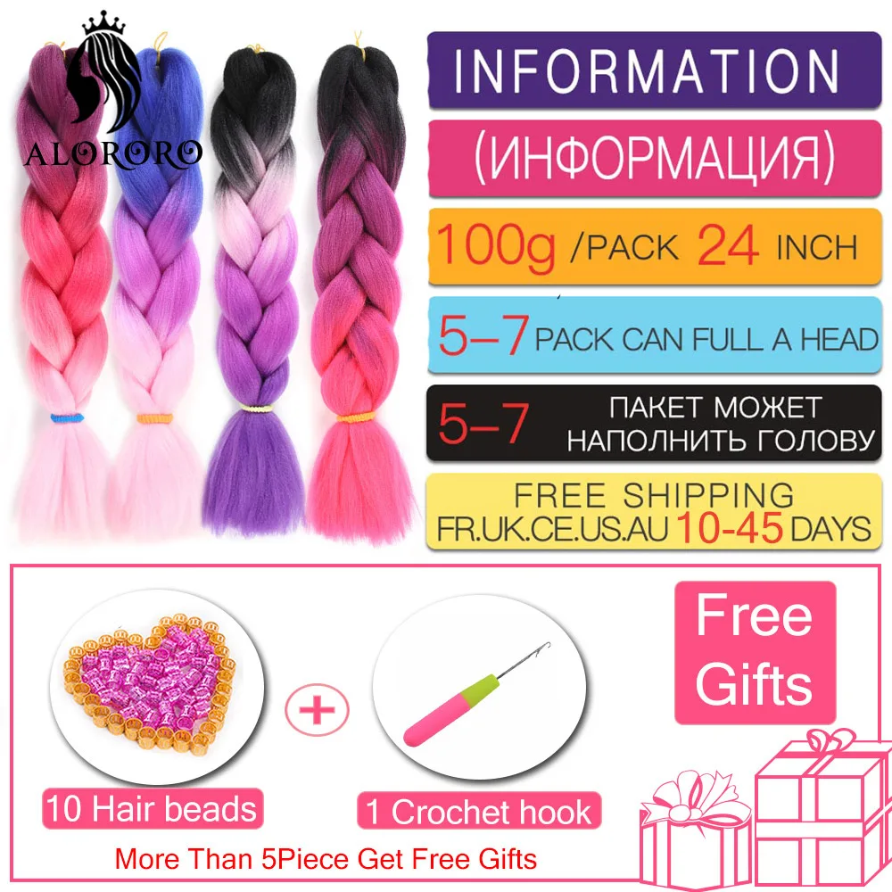 Косички для наращивания волос, африканские косички, 24 дюйма, синтетические волосы для косичек, розовые, красные, серые, Омбре, искусственные волосы, оптовая продажа, Alororo