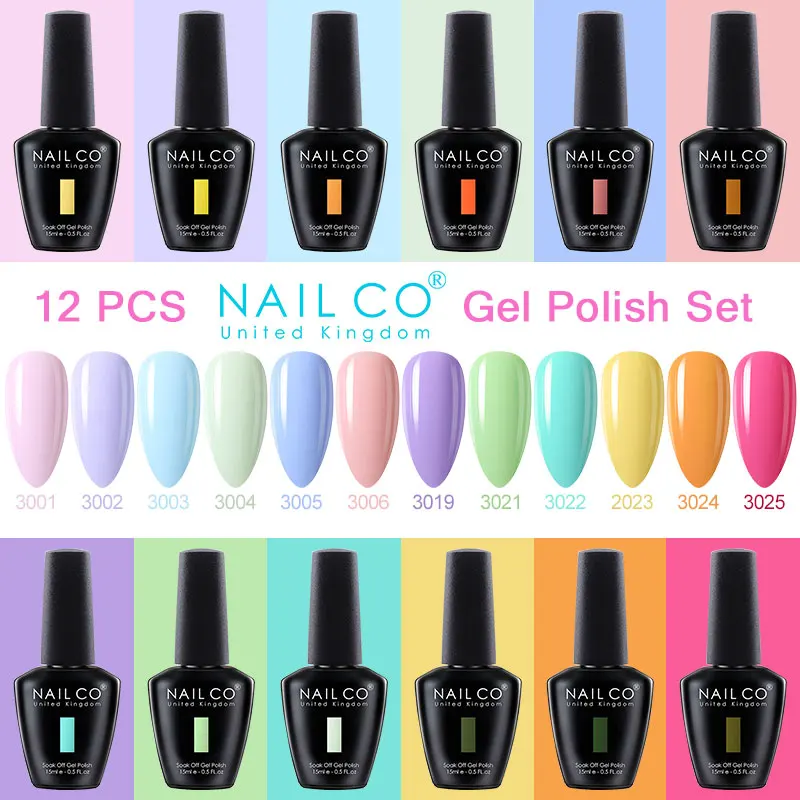 Набор из 12 цветных гель-лаков для ногтей NAILCO, полуперманентный УФ-лак для дизайна ногтей для профессионалов, топ для дизайна ногтей$44,4/Шт/Лот 1