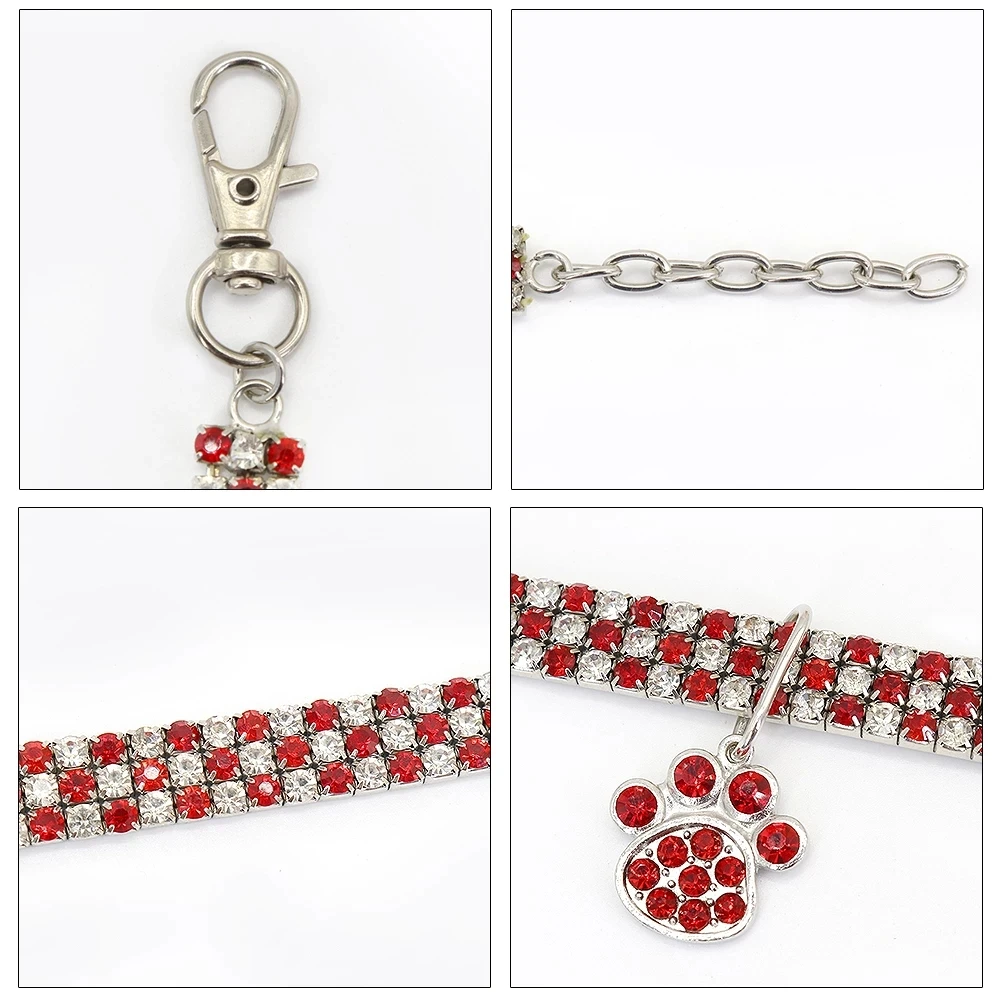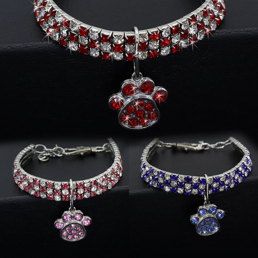3 ряда украшения Стразы Ошейники для собак лапа подвеска Регулируем...