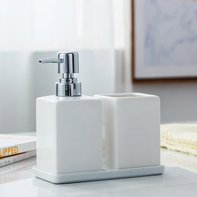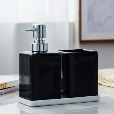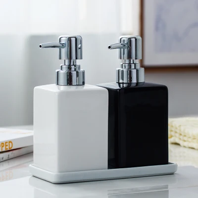 Набор керамических дозаторов жидкого мыла с керамическим поддоном