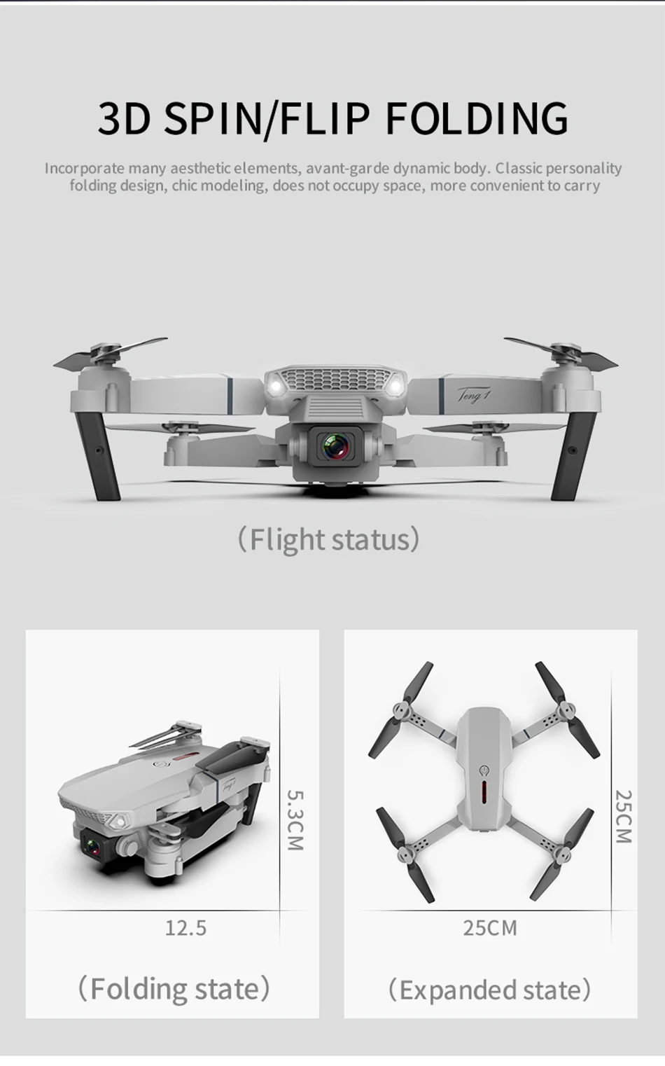 Фюзеляж складывается, одним нажатием кнопки, одной кнопкой посадки, парения на фиксированной высоте и фиксированной высоте воздушным давлением wifi соединение,