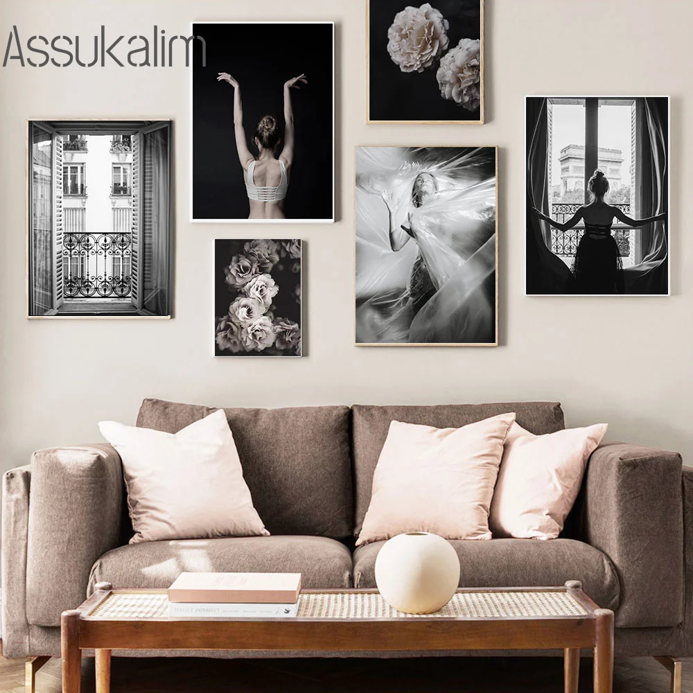 Черно-белая Настенная картина, Элегантный женский плакат, модные пл...