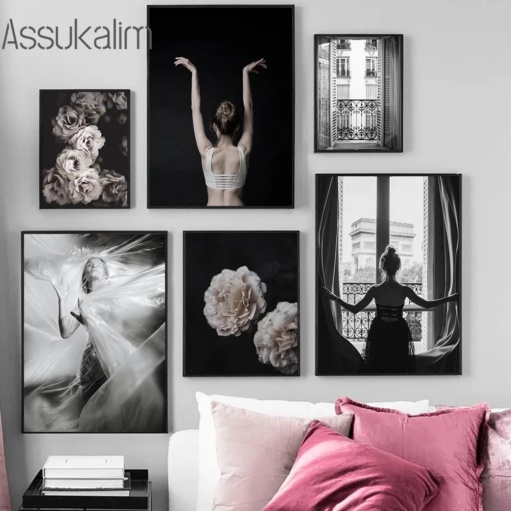 Детская Живопись балерина Холст плакат цветок настенный принт розов...