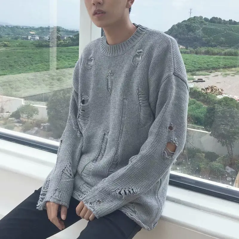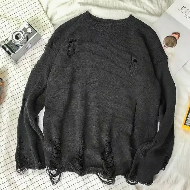 Рваные вязаные свитера с дырками для мужчин и женщин, уличная одежд...