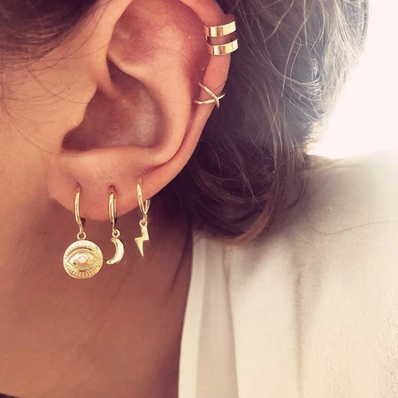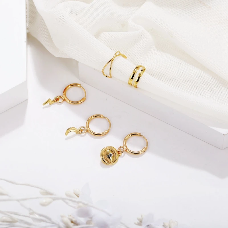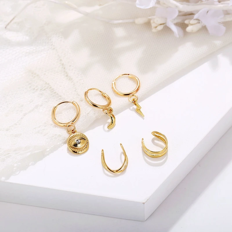 5 шт.компл. богемные серьги в виде Луны для женщин и девушек ретро готические серьги-гвоздики геометрические серьги пирсинг женские ювелирные изделия тренд новый подарок