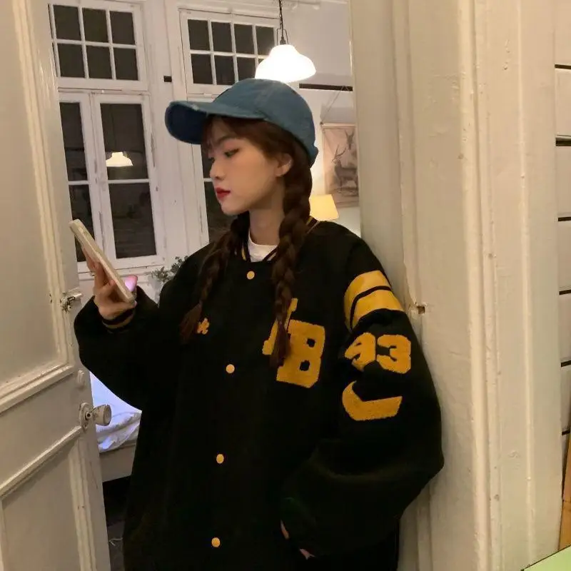 Новинка весна-осень 2021, трендовая свободная универсальная бейсбольная форма, свитер с вышивкой, Женская куртка