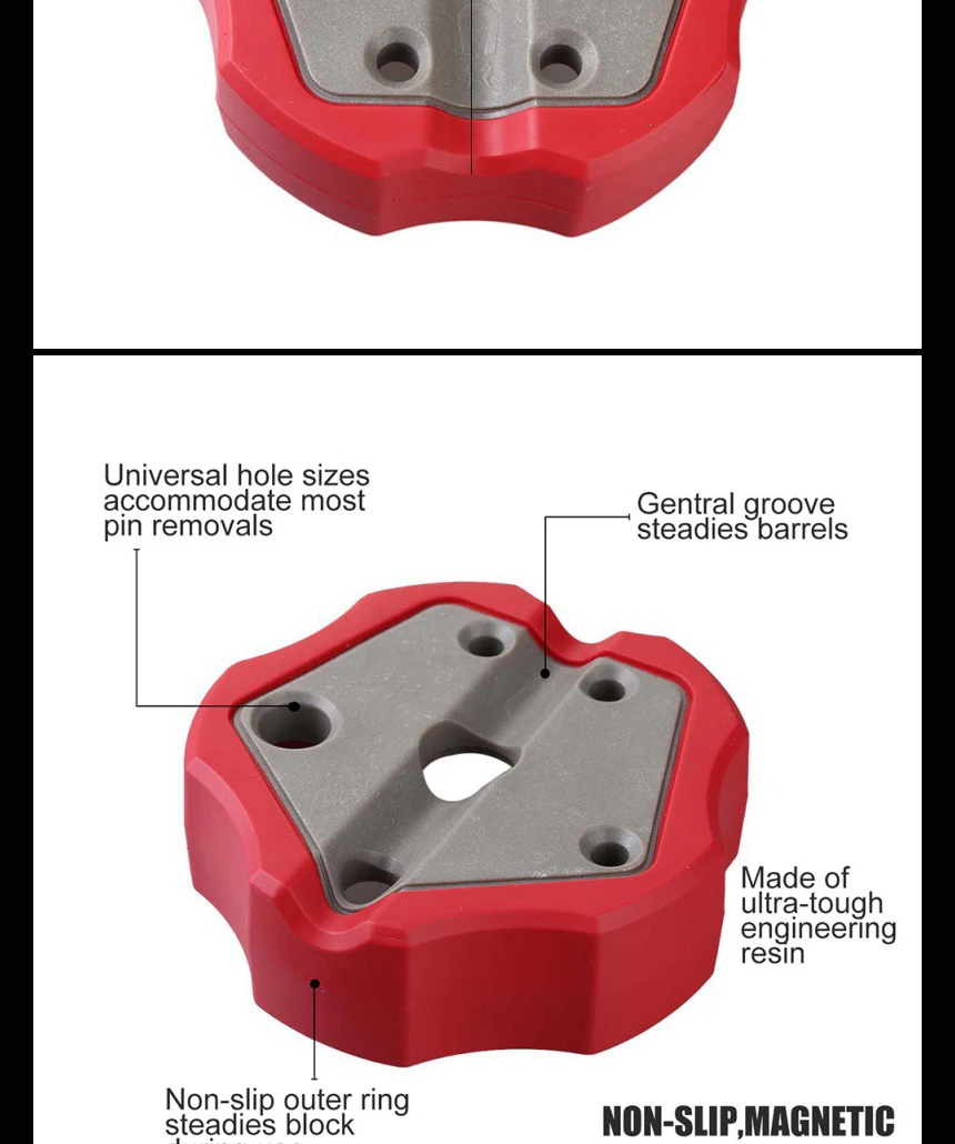 Легко удаляет булавки из различных пистолетов: универсальные размеры отверстий для штифтов содержат большое разнообразие оружия