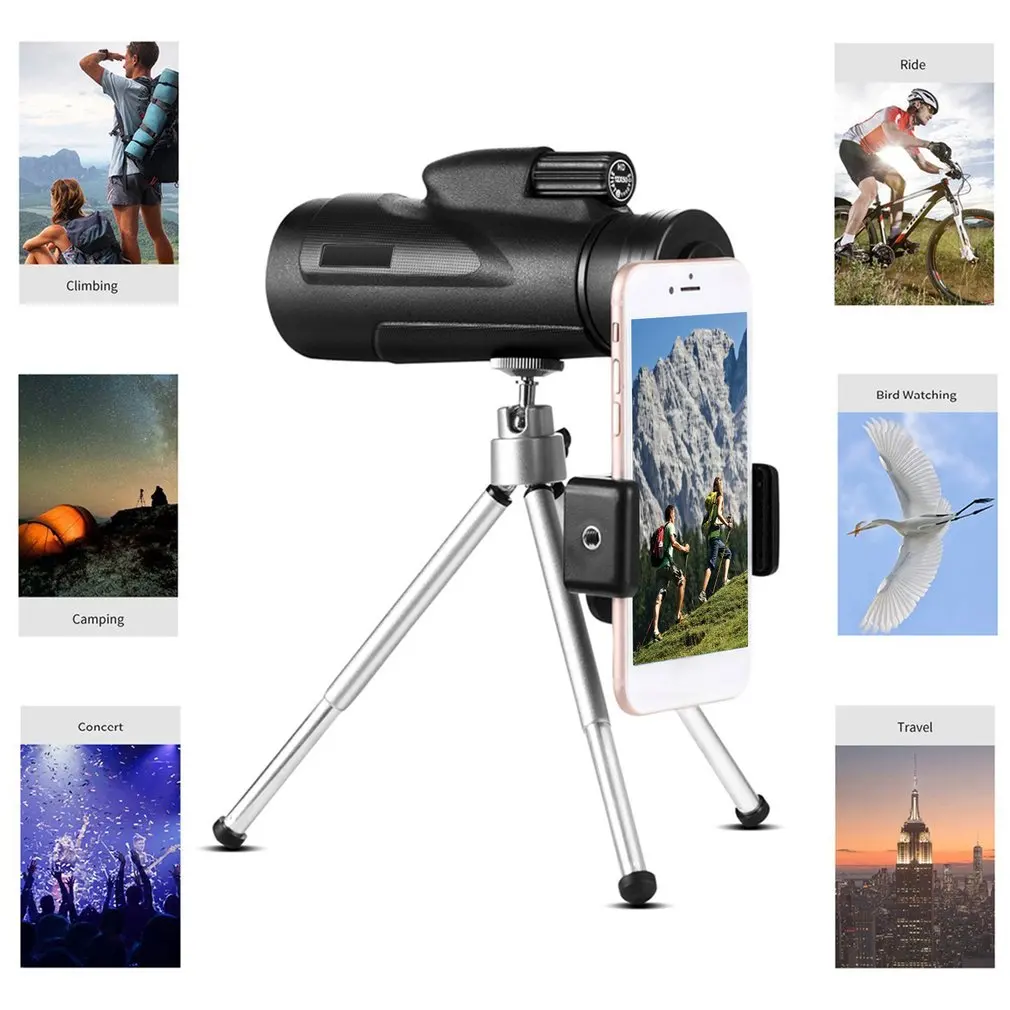 Мощный монокулярный телескоп 12x50, дополнительный штатив и держатель для смартфона, подходит для туризма и кемпинга