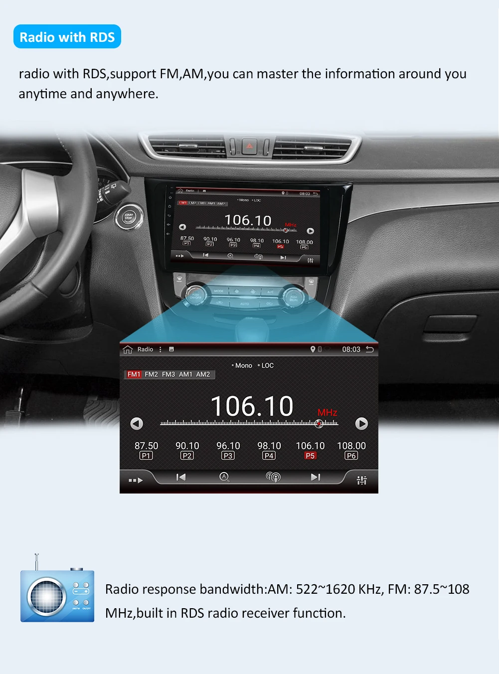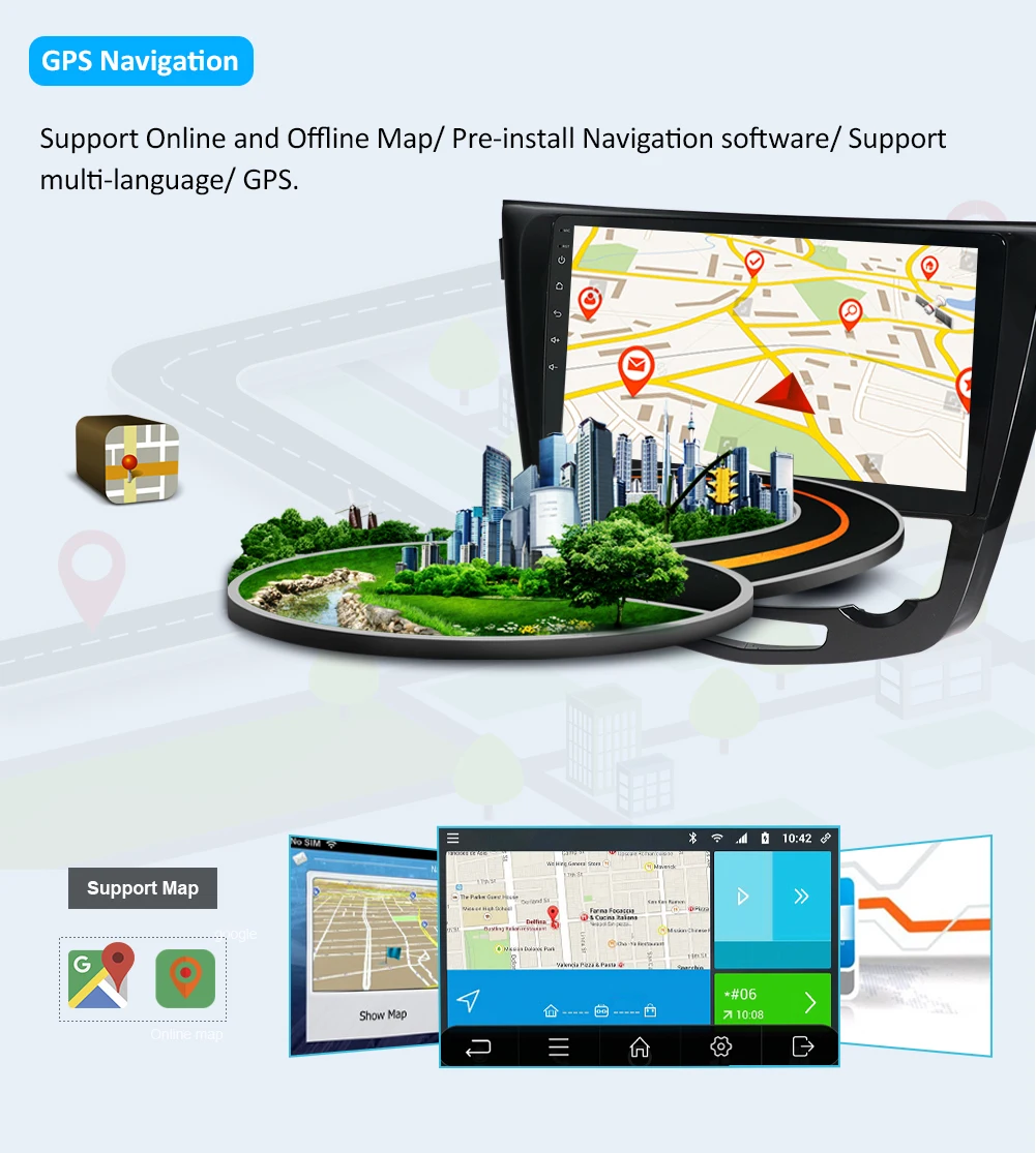 Сенсорный экран + радио + FM/AM + RDS + gps-навигация + карта + Wifi + Bluetooth + управление рулевым колесом + сплит-экран + USB + SD + AUX вход/выход + зеркальная ссылка + задний камера + сабвуфер + Play Sore + EQ + набор обоев + логотип автомобиля + 3G/4G + TPMS + DAB + OBD 2 + DVR + TV