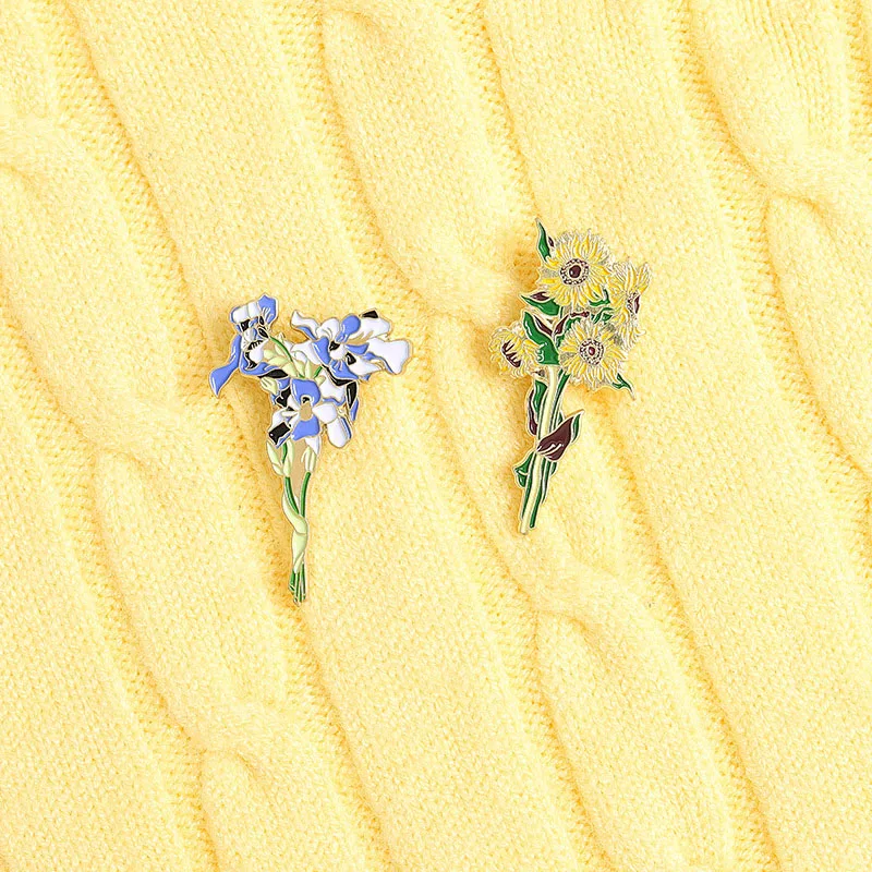 Значок на лацкан Ван Гога брошь в виде подсолнуха радужной оболочки цветок шляпы металлические эмалированные Значки для одежды значки для рюкзака Подарки для женщин