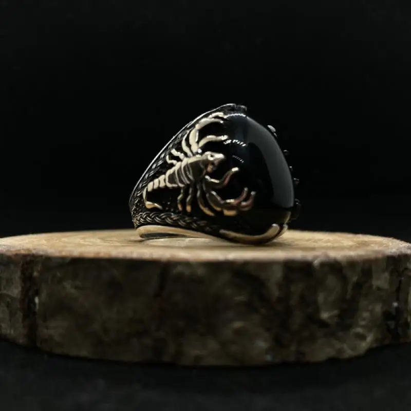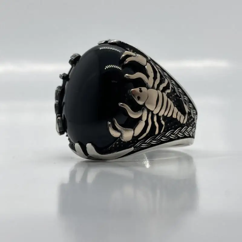 Модное индивидуальное винтажное мужское кольцо в виде насекомого скорпиона с черным камнем