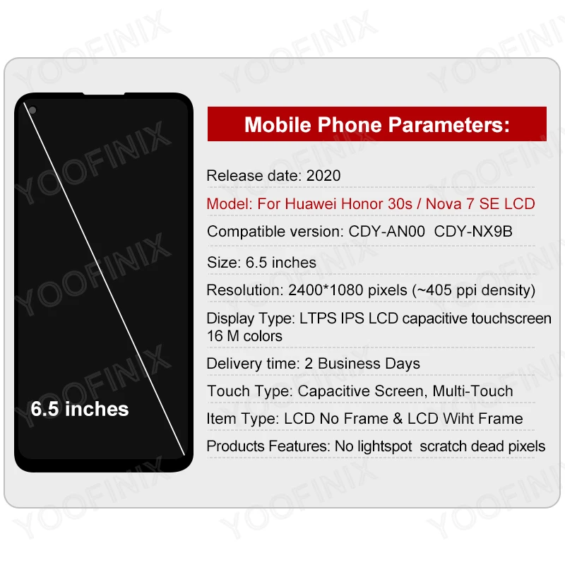Compatible with For Huawei Honor 30S/Nova 7 SE LCD