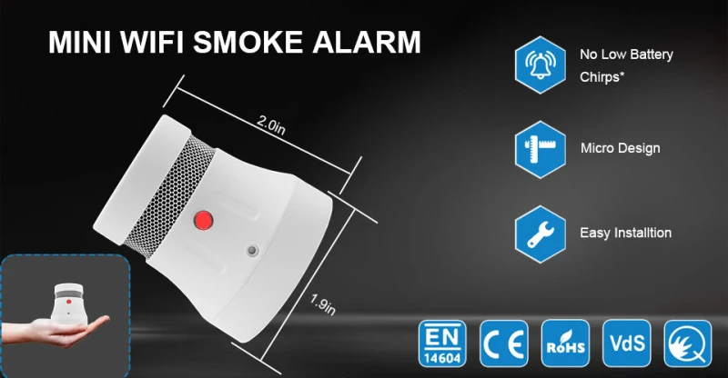 Датчик дыма WiFi чувствительно обнаруживает дым, необходимость предотвращения пожара в помещении