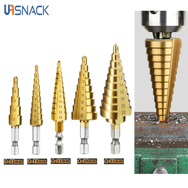 Титановые ступенчатые сверла из быстрорежущей стали, конические режущие инструменты, аксессуары для деревообработки, сверла для дерева и металла 3-12 3-13 4-12 4-20 4-22 мм