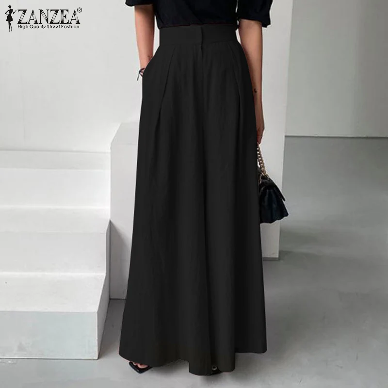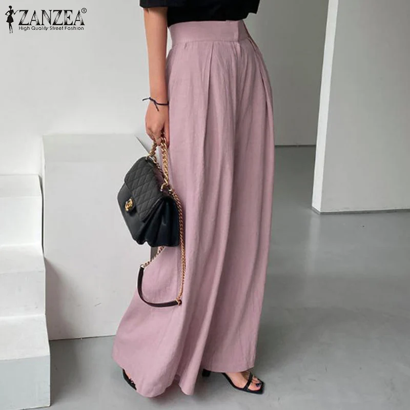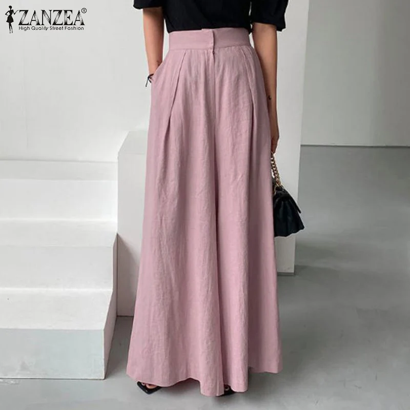 Женские широкие брюки ZANZEA 2021, кафтан, плиссированные брюки, повседневные длинные брюки с высокой талией, Женские однотонные брюки большого размера с принтом репы