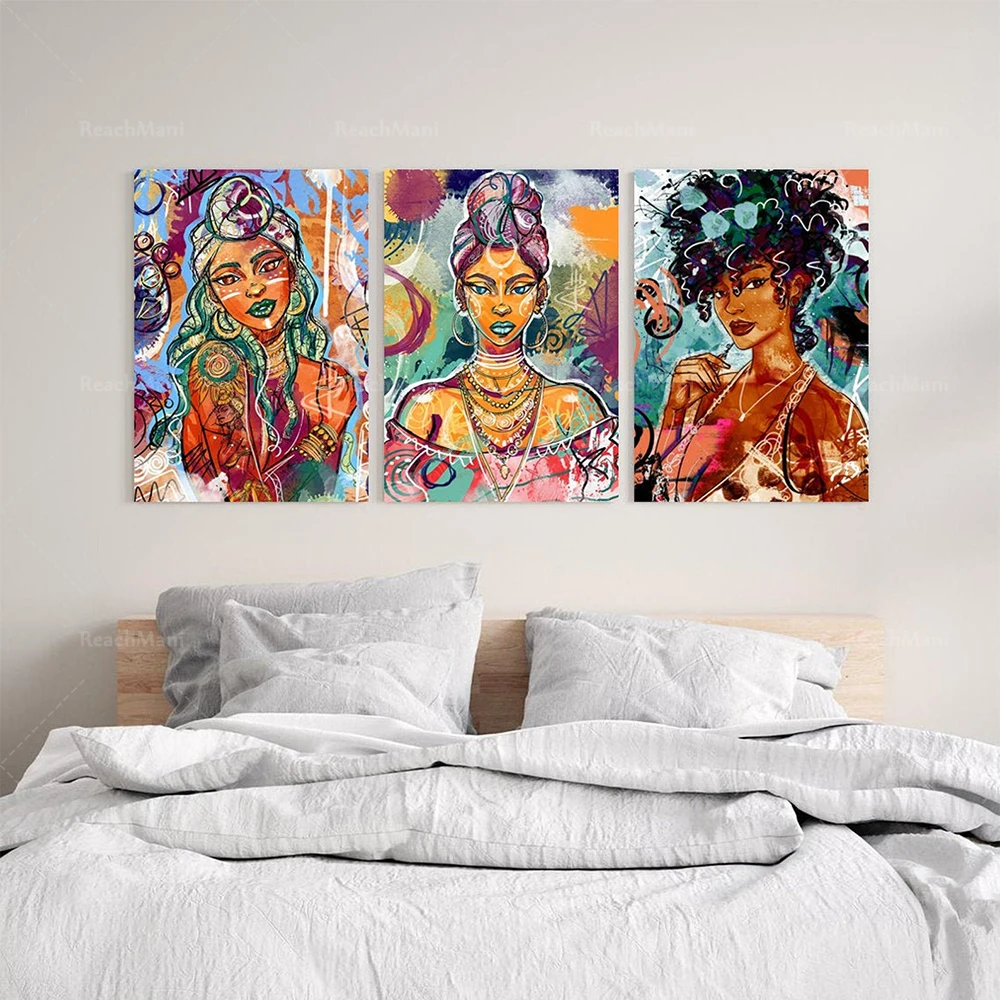 Цветной черный женский Фотофон, набор из 3 предметов, Африканское искусство, африканская Женская Настенная картина, украшение для дома