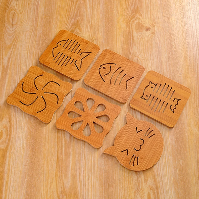Изготовлен из дерева, нескользящий, термостойкий и прочный, креативный коврик в мультяшной форме, гладкая древесина и мягкие пуговицы в основании, чтобы гарантировать, что ваши столы не поцарапаются, безопасны и стабильны