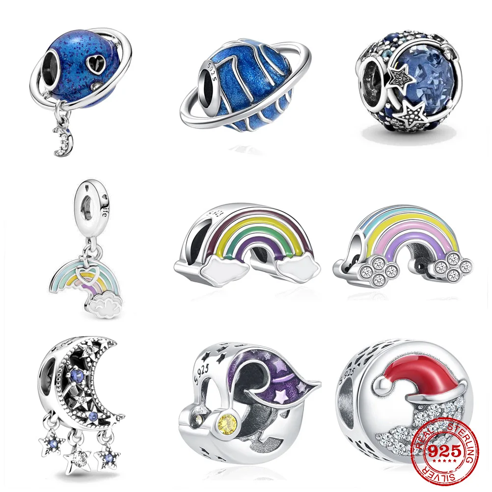 Бусины-подвески женские из серебра 925 пробы в виде планеты, радуги, Луны