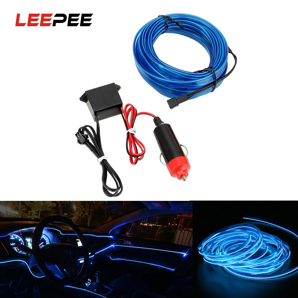 Светильник вые полосы для украшения интерьера, декоративная лампа для автомобиля 12 В, светодиодный холодсветильник свет s, гибкий неоновый Электрический провод, Стайлинг автомобиля 5 м, 2 м, 1 м