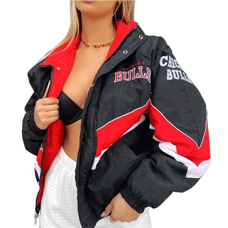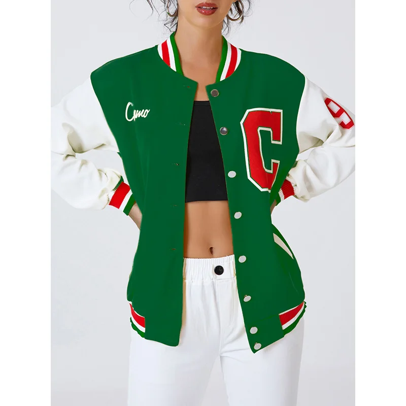 Женская спортивная бейсбольная куртка с длинным рукавом и надписью