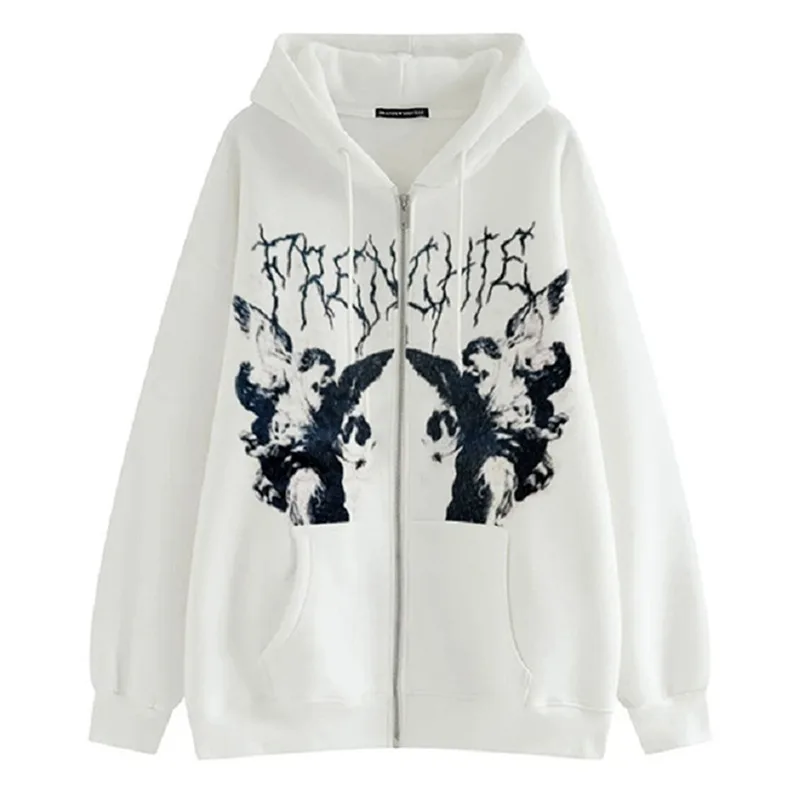 Толстовка МужскаяЖенская Y2K, с капюшоном на молнии, с принтом анге...