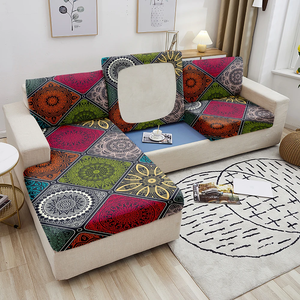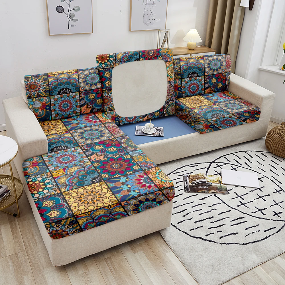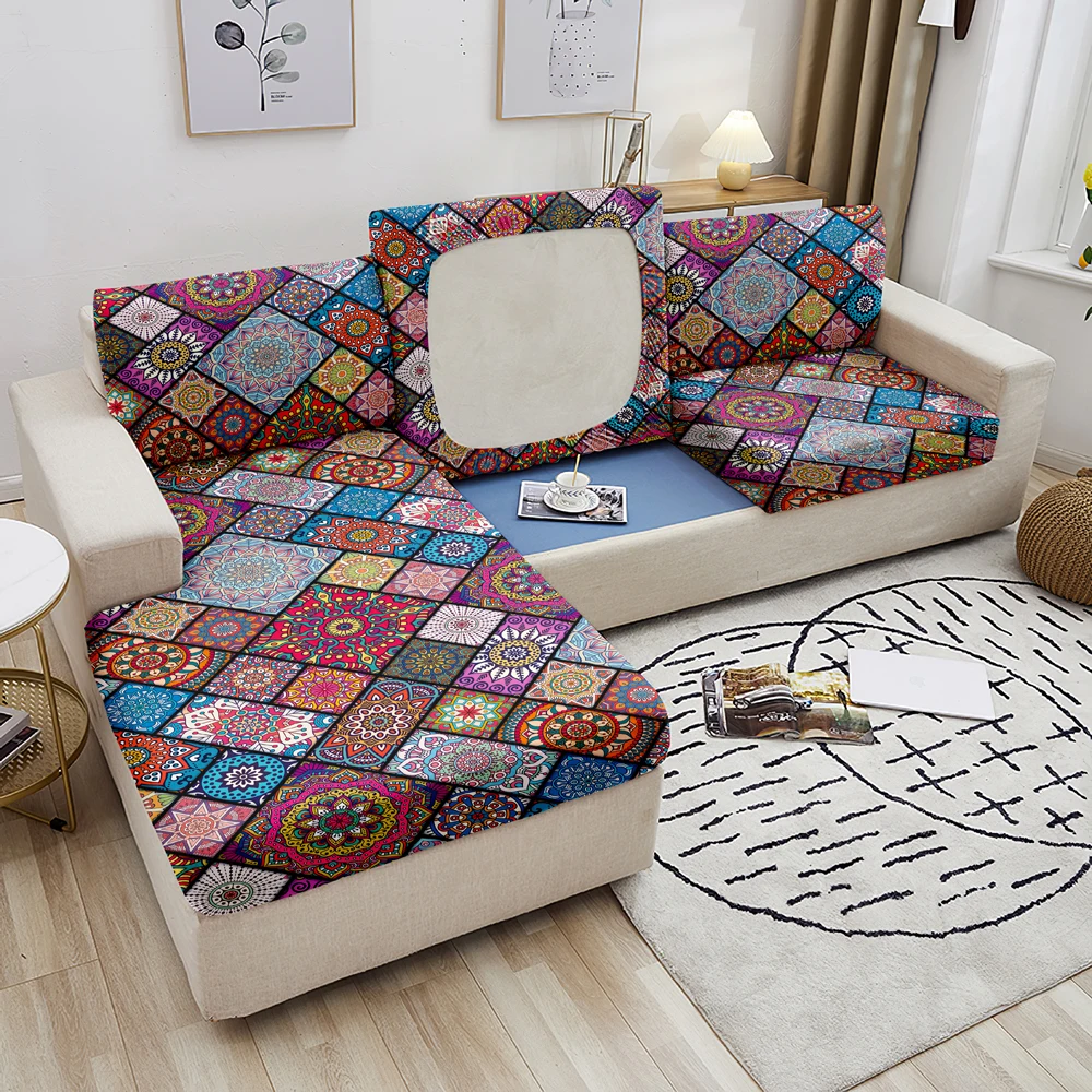 Чехол для дивана в стиле бохо, эластичное защитное покрытие для мебели, 1234-местного дивана, с рисунком мандалы