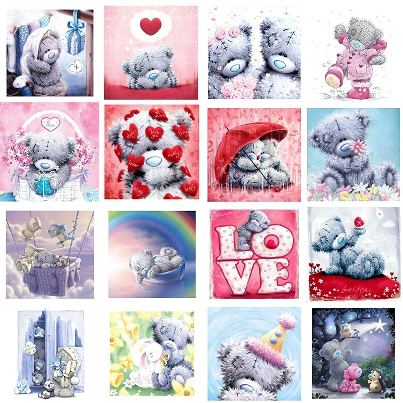 Алмазная 5D картина сделай сам, мультяшный мишка тедди, цветок, вышивка, мозаика, вышивка крестиком, домашний декор, подарок