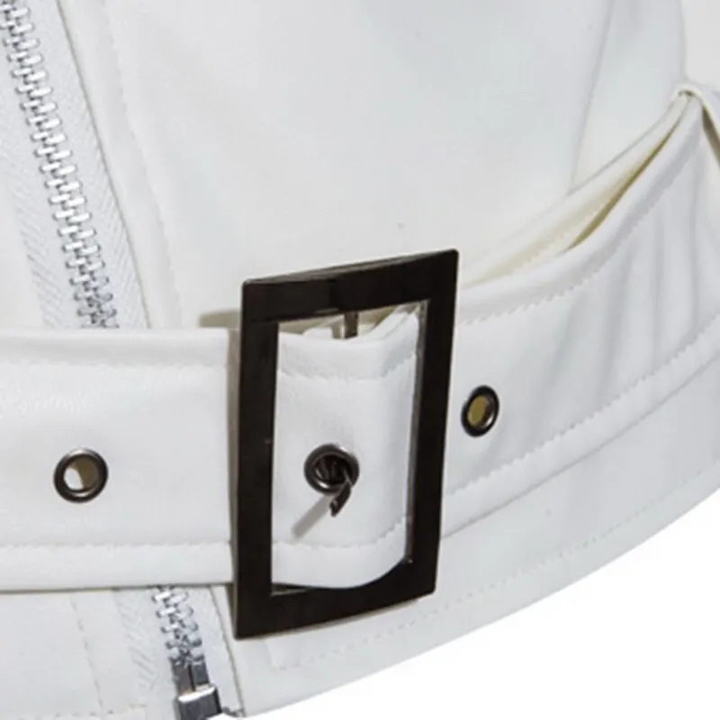 Мужская приталенная белая кожаная мотоциклетная куртка, новая мужская верхняя одежда, байкерские кожаные пальто, Размер 4XL