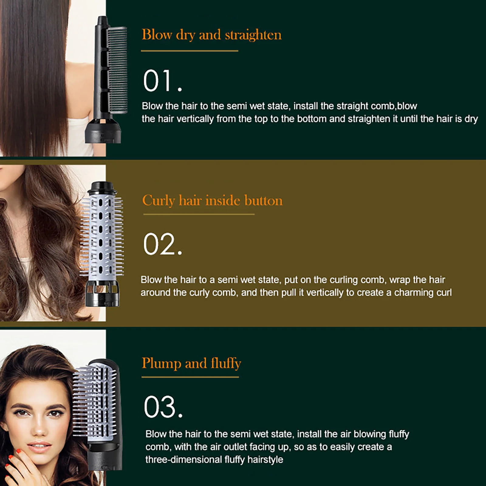 Щетка для сушки волос имеет различные функции, такие как высыхание, сушка, выпрямление, завивка, внутренняя Пряжка и т. д. Его можно заменить в любое время, легко разбирать и легко чистить, что может удовлетворить ваши различные потребности в дизайне.