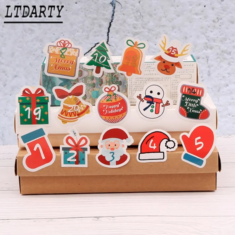 24 шт.компл. Рождественский Адвент-календарь, бумажные наклейки, пе...