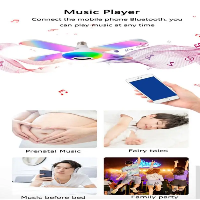 Музыкальный светильник E27 RGB с 4 листьями, светодиодсветодиодный ...