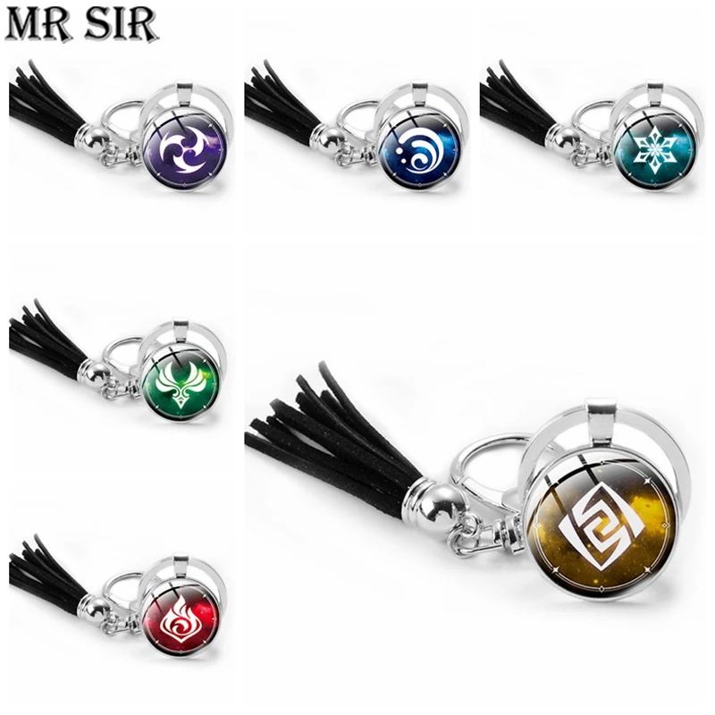 Брелок Genshin Impact God Eye, Water Wind, Thunder, Fire, Rock, Ice элемент, кисточка, брелок для ключей из аниме игры подвески, брелки в подарок