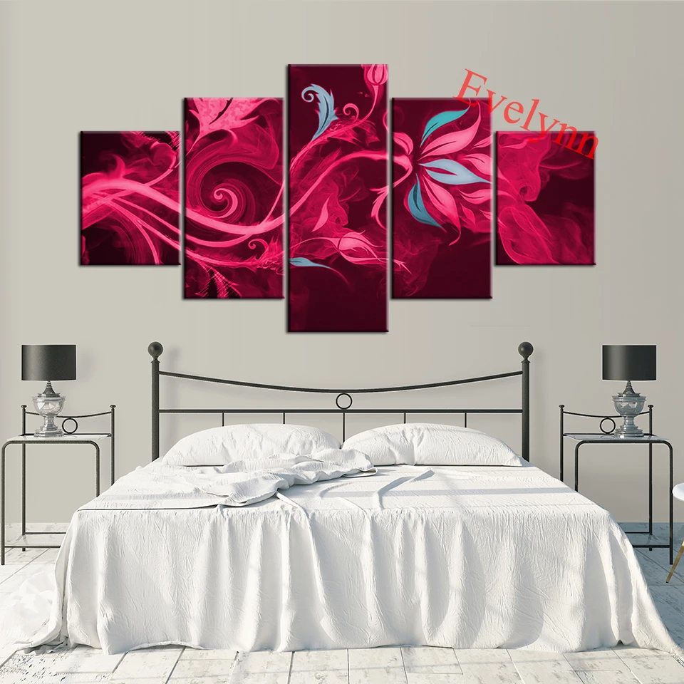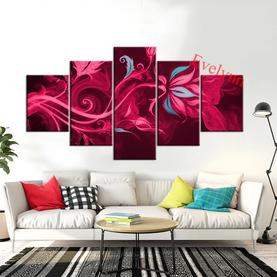 Настенное искусство, холст, абстрактный цветок, фрактал, 5 шт., худ...