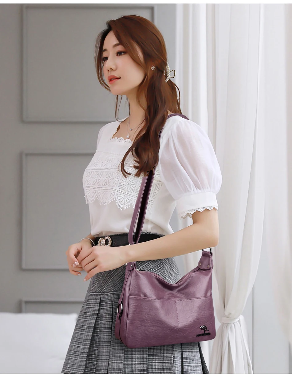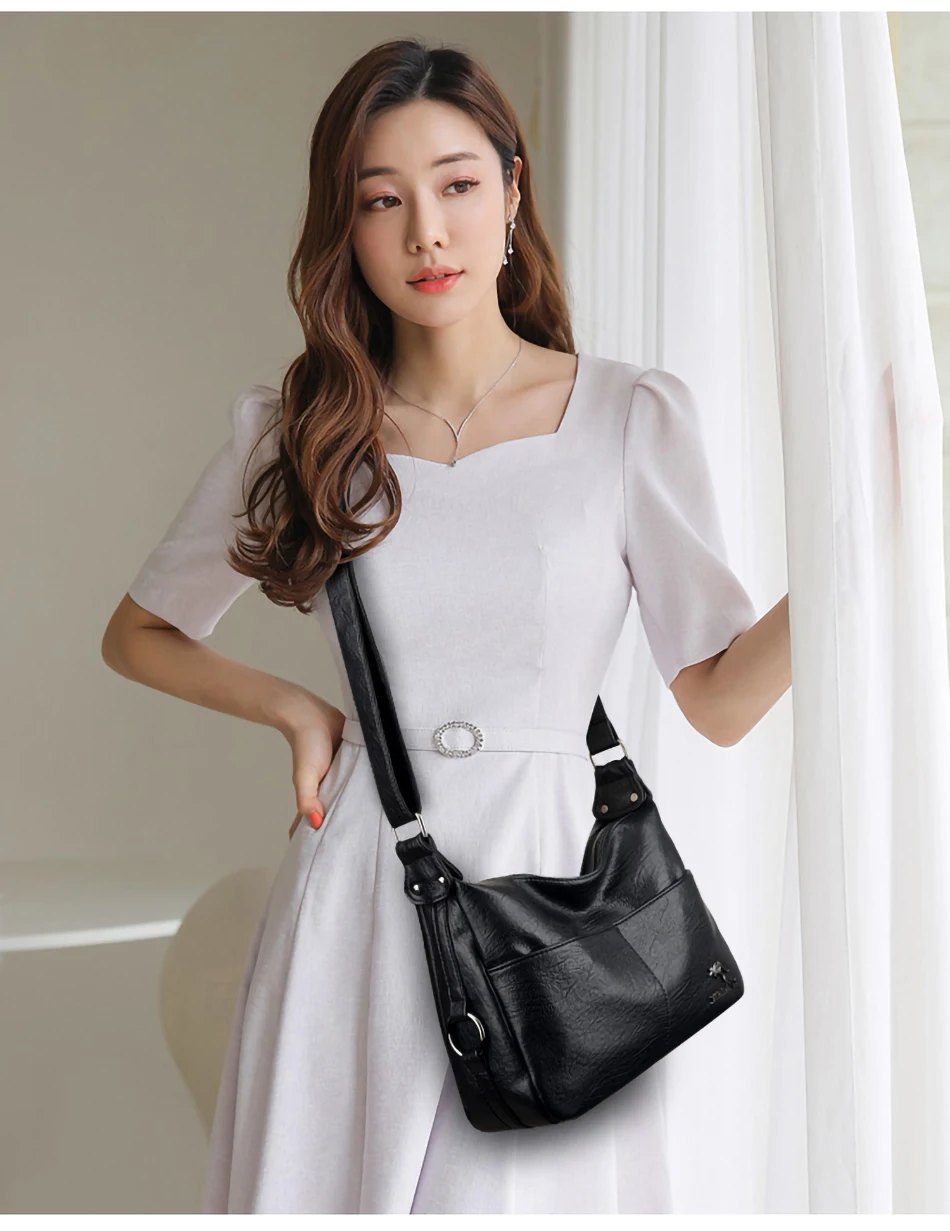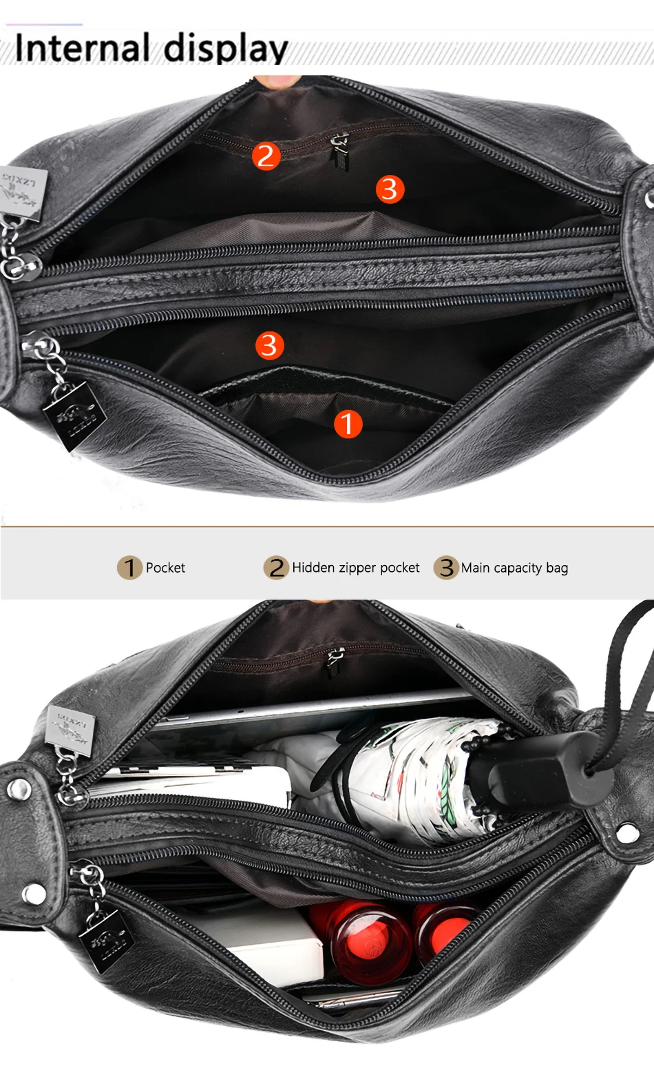 Сумка на плечо женская с несколькими карманами, мессенджер из высококачественной искусственной кожи с защитой от кражи, повседневный саквояж