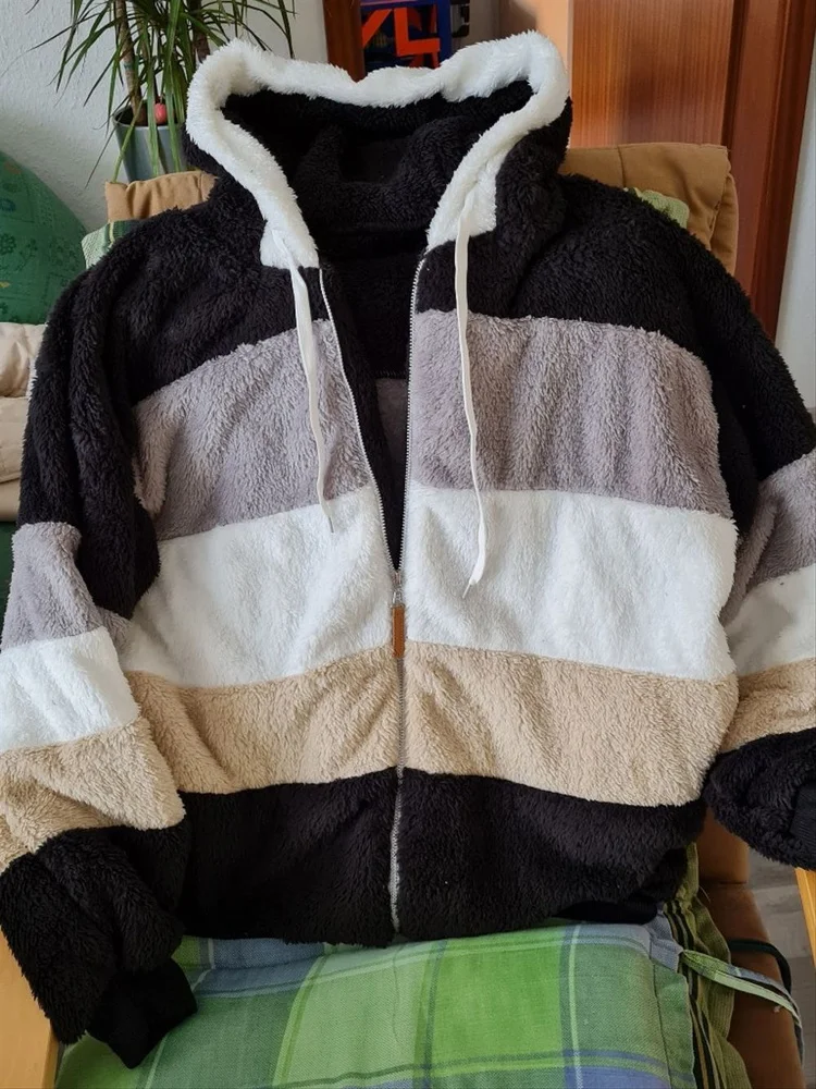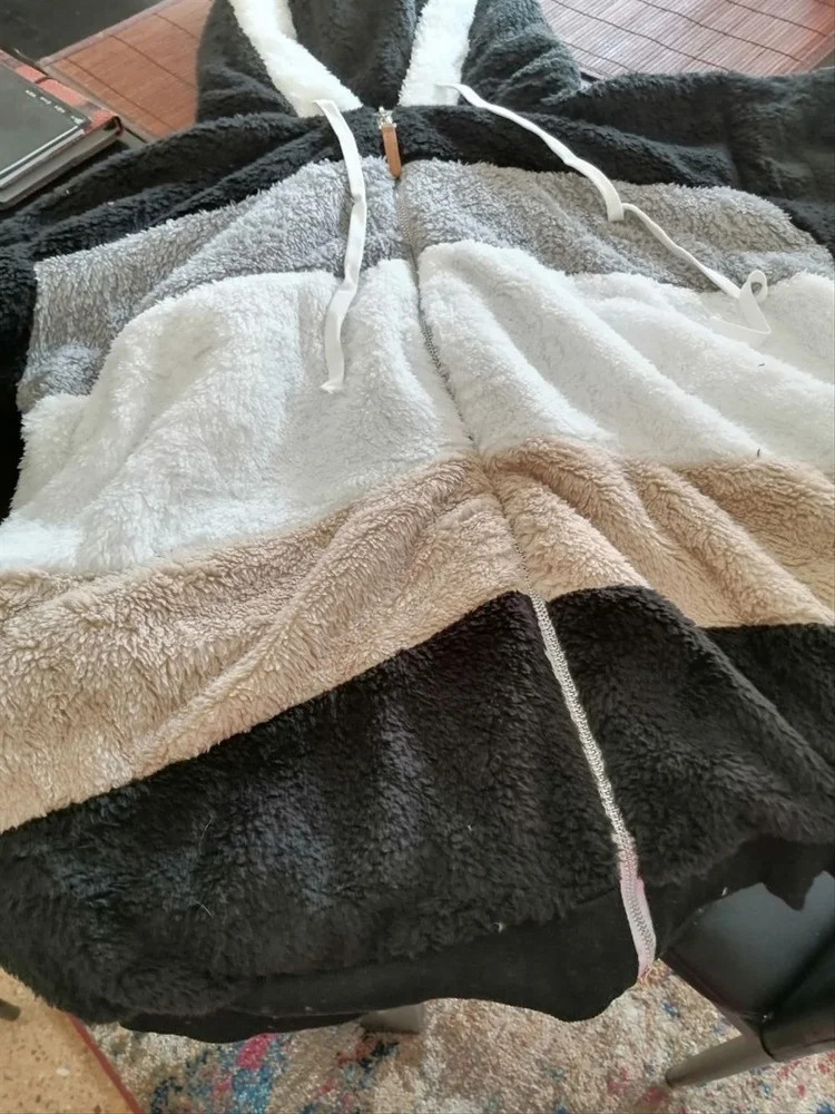Женская куртка, модное лоскутное плюшевое пальто на молнии с капюшоном, верхняя одежда, зимняя теплая свободная парка с карманами из искусственного меха, Женское пальто