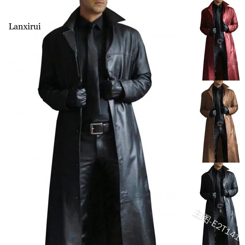 Мужское пальто из искусственной кожи, длинное однотонное пальто, Ос...