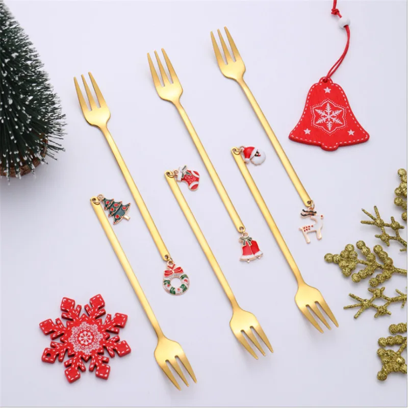 2022 новогодние и рождественские ложки, вилки, рождевечерние ская посуда, украшения, рождественские украшения для дома, Рождество 2021