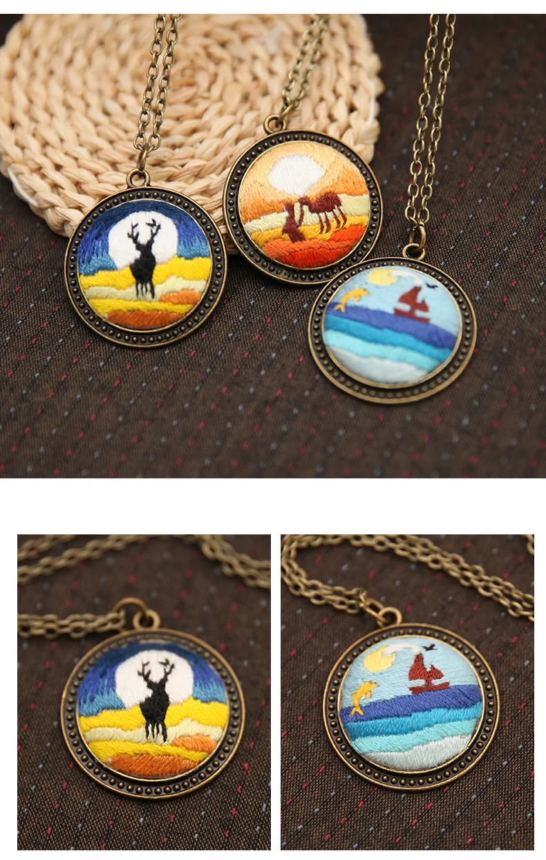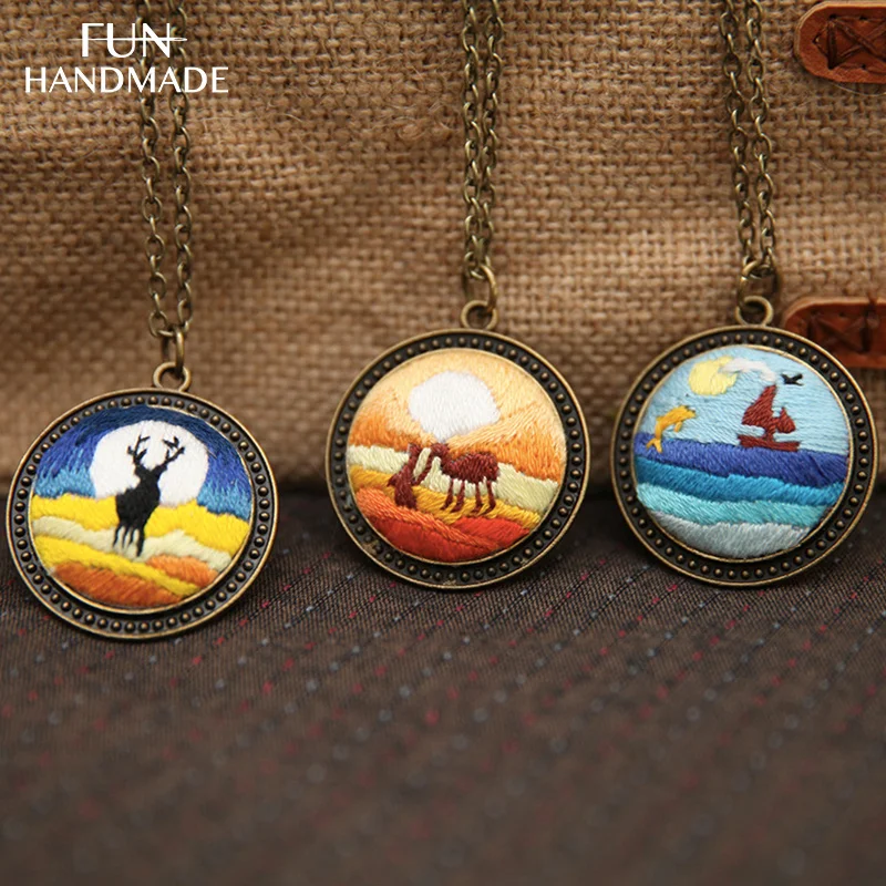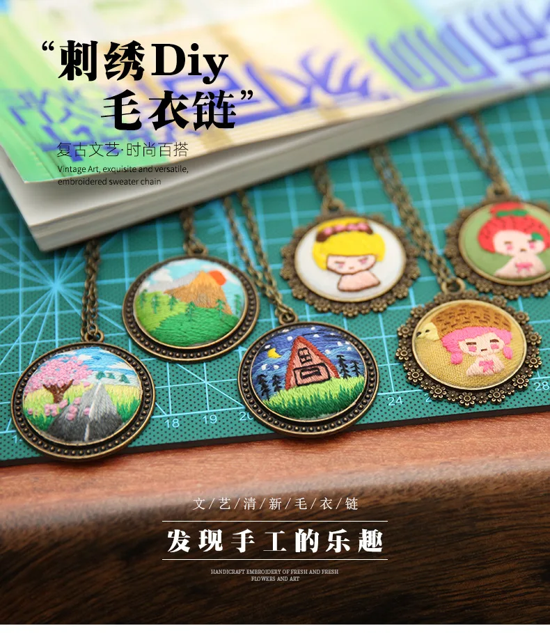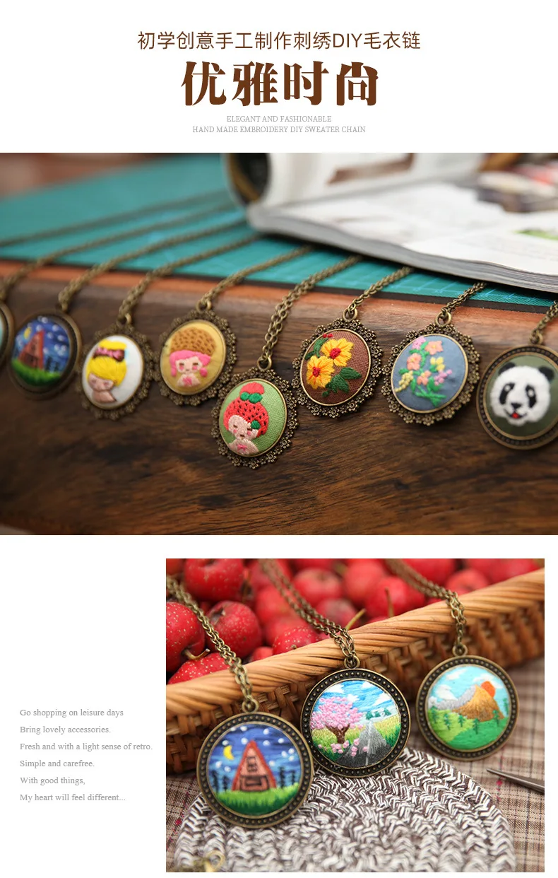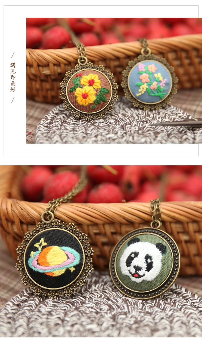Креативное ожерелье сделай сам, Набор для вышивки, цветочный узор, вышивка крестиком с обручем, ручная работа, искусство, рукоделие, подарок