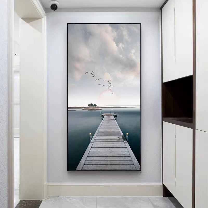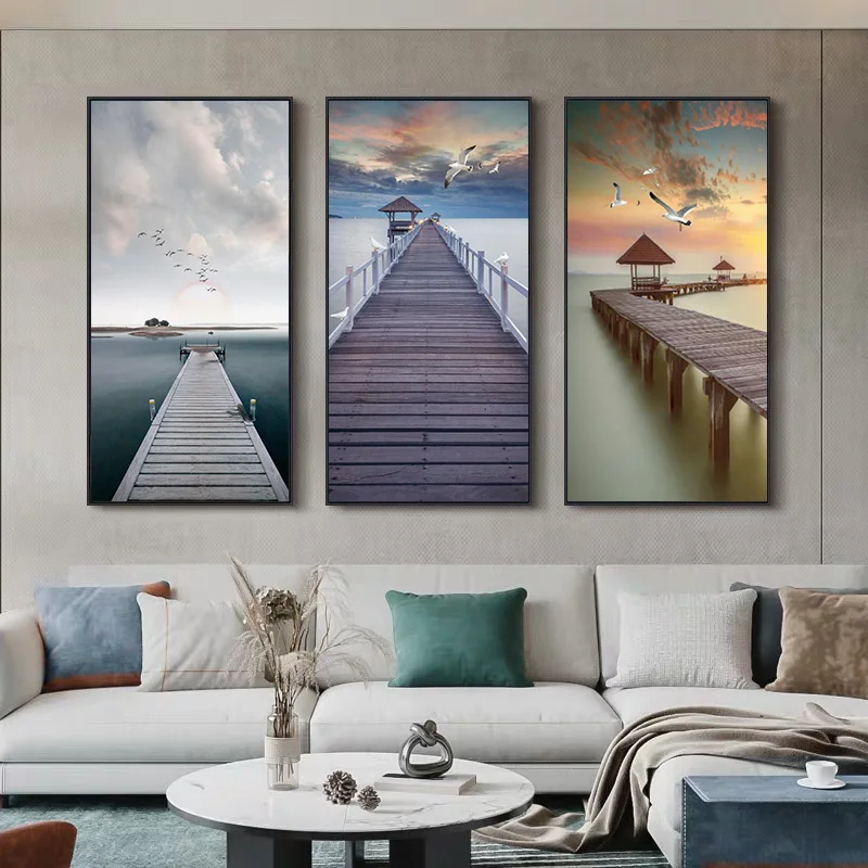 Картина с изображением скандинавского пейзажа, деревянный мост, морской пейзаж, плакаты и принты, настенные картины для гостиной, домашний декор