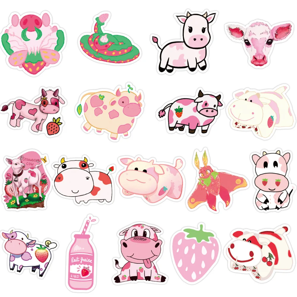 50 шт. с милым клубничным принтом корова Животные мультфильм Стикер...