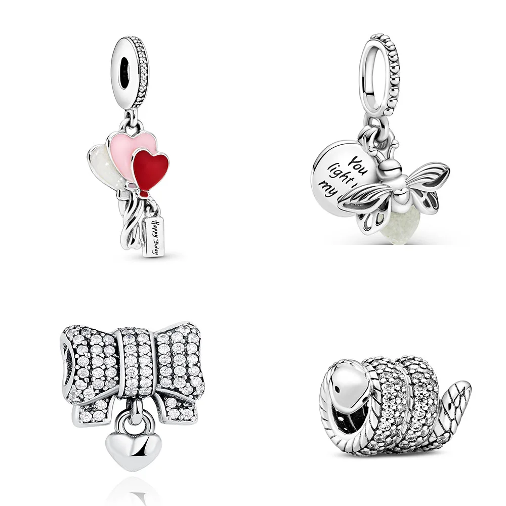 Женская серебряная подвеска, бант, змея, Светлячок, сердце, подходят для оригинального браслета, изящные Серебряные украшения