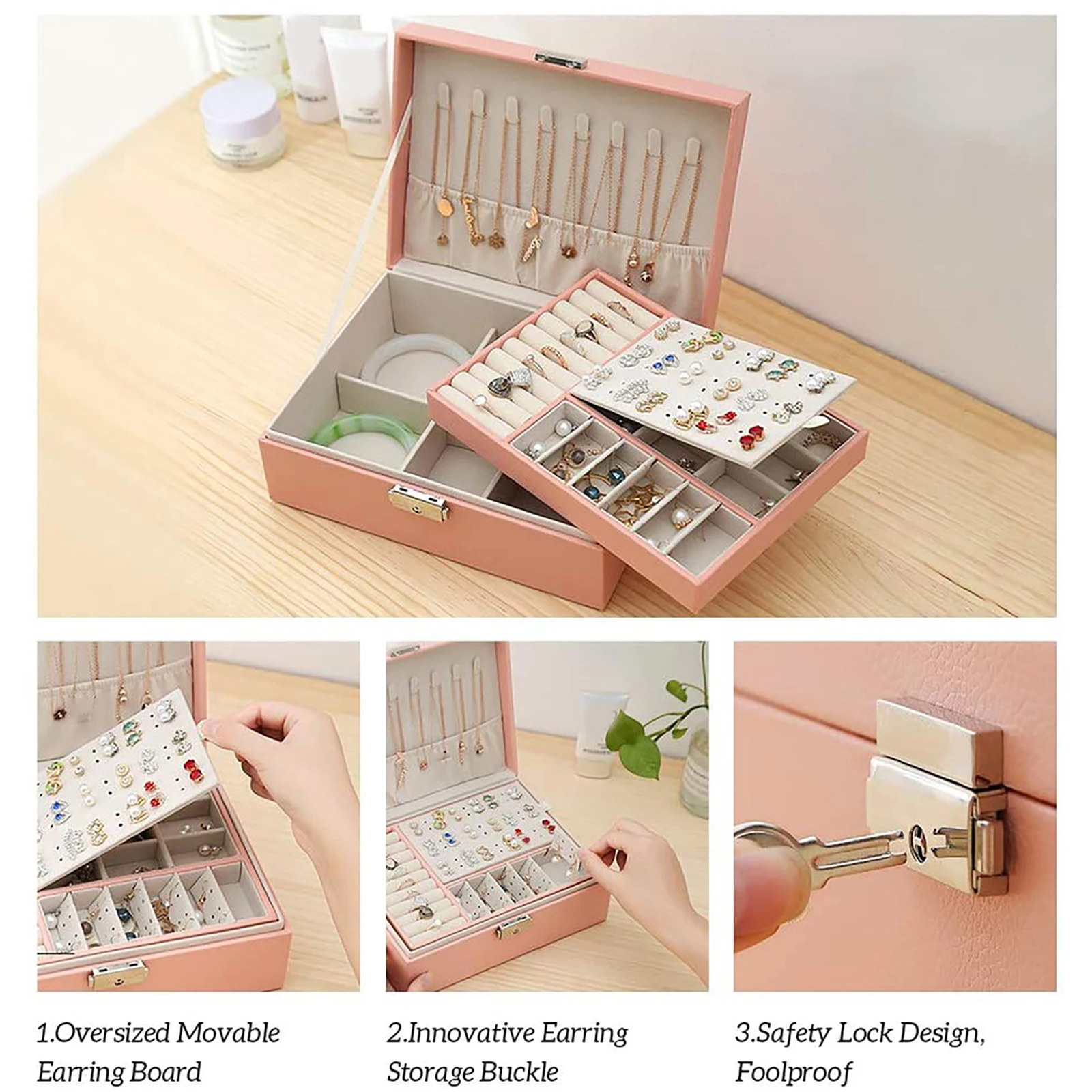 Двухслойная бархатная шкатулка для ювелирных изделий, органайзер для ювелирных изделий из искусственной кожи, витрина, держатель для чехла, европейская шкатулка для хранения ювелирных изделий для женщин, популярный подарок