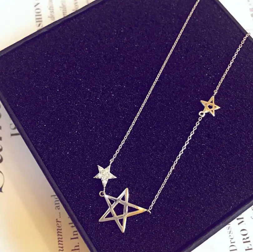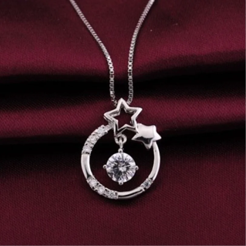 Женское ожерелье с подвеской ANENJERY, из стерлингового серебра 925 пробы с цветком и звездой, вечерние аксессуары