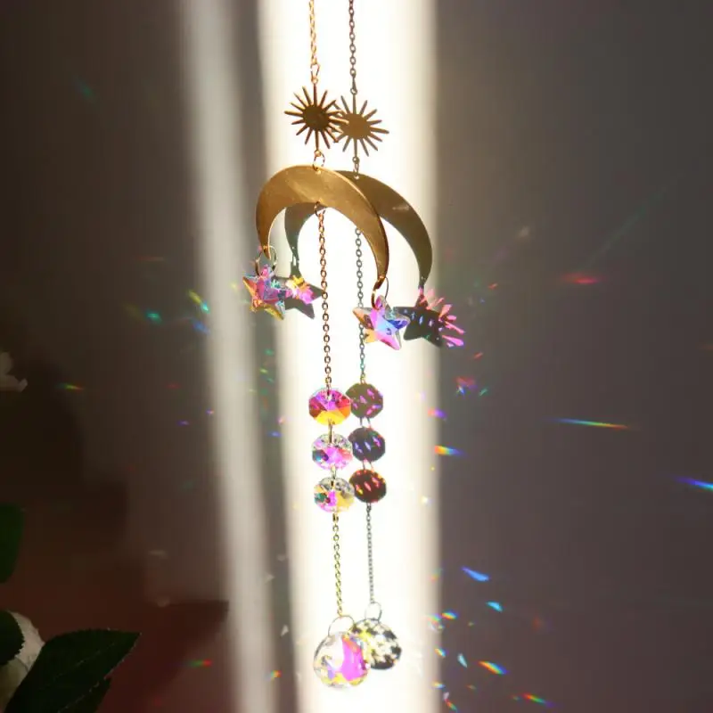 Хрустальная подвеска в виде колокольчика, звезды, Луны, солнца, Ловец снов с покрытием, красочные бусины, подвесная капля для улицы, ветряные музыки, Садовые принадлежности