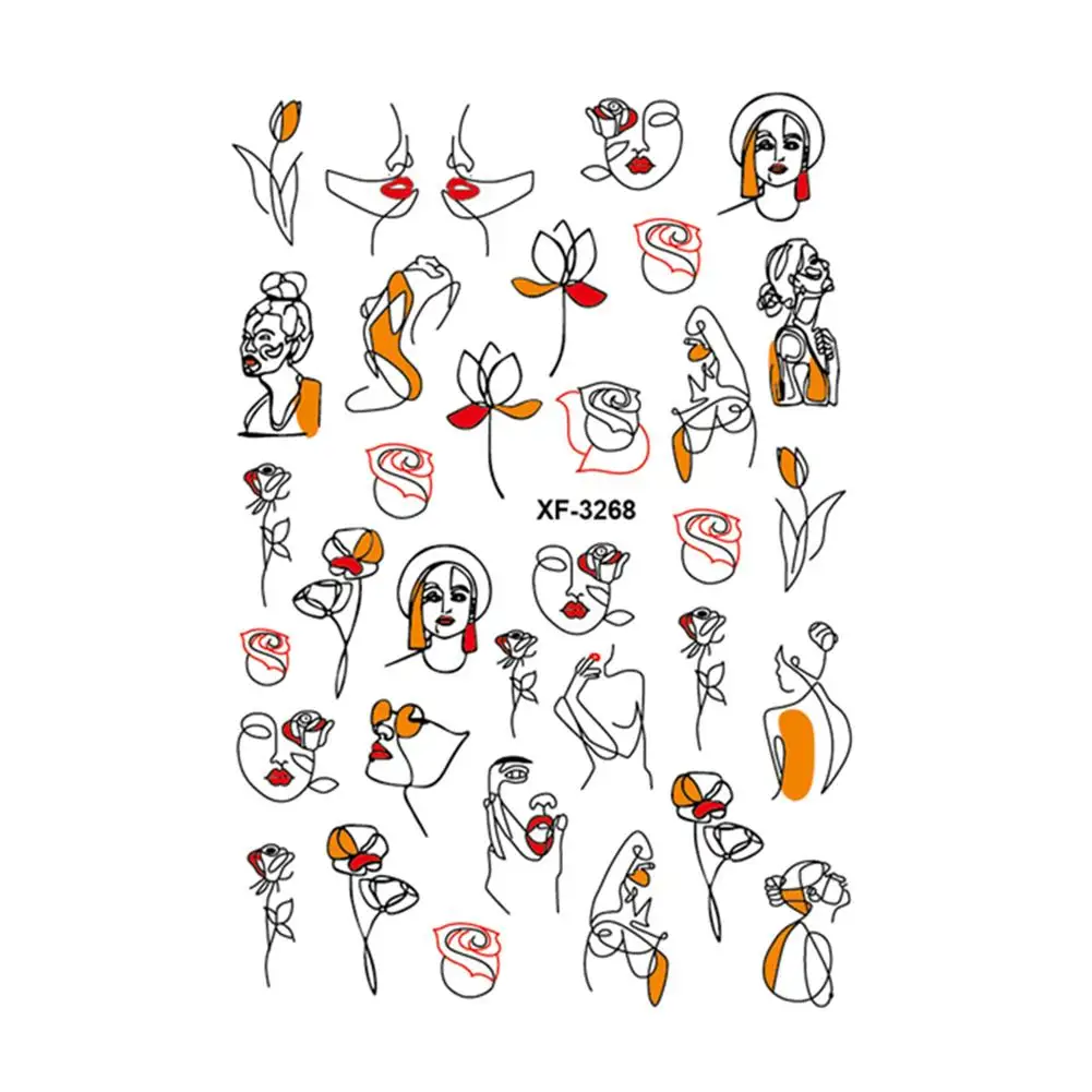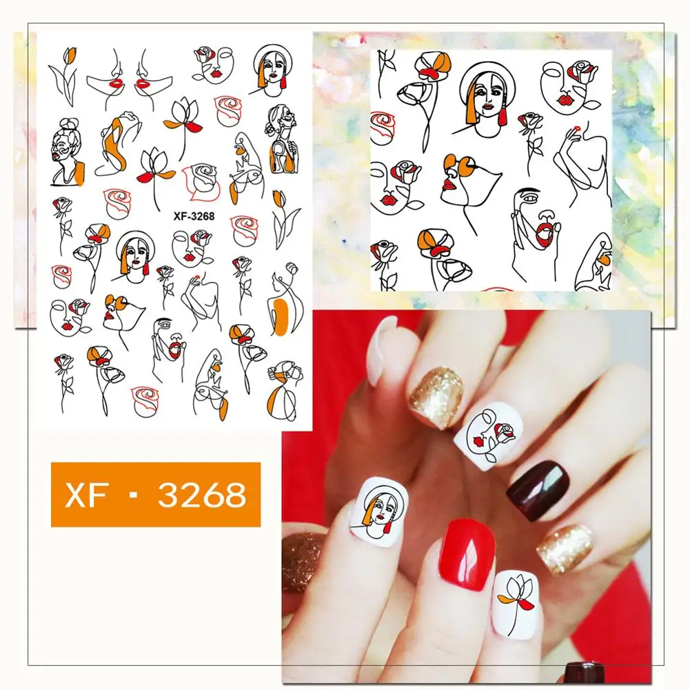 1 лист наклеек для ногтей с абстрактным изображением, наклейки для ногтевого дизайна, Самоклеящиеся DIY наклейки для маникюра, простые наклейки-слайдеры