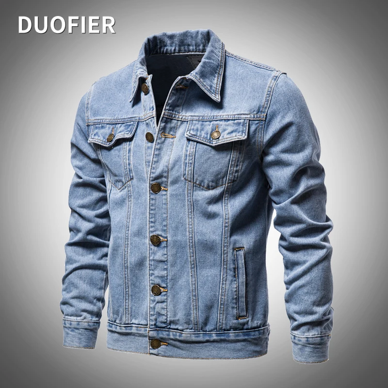 Куртка мужская джинсовая однотонная, Повседневная Уличная одежда из...