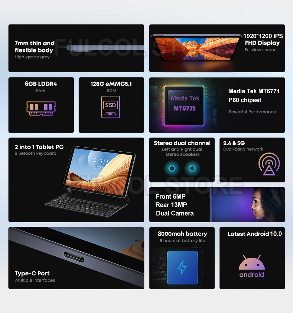 Beesпрокат Mipad P30 Tab 2 в 1 планшет с восьмиядерным процессором 8 ГБ + 128 Гб 13 + 5 Мп двойной камерой Android 10,0 планшетный ПК 10 дюймов 1920x120 0 IPS
